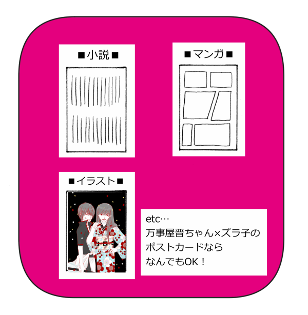 未成年の方にも企画を楽しんで頂きたいため、露骨な性表現は避けて頂きますようお願い致します。